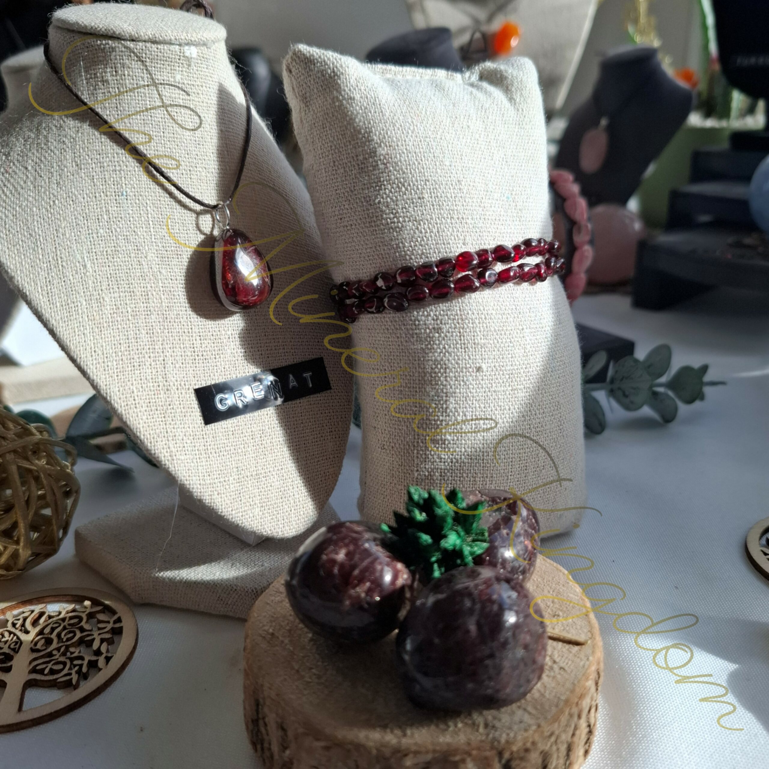 La boutique présente des pierres naturelles brutes ou roulées ainsi que des bijoux en pierres naturelles, de l’encens et articles de bien-être.